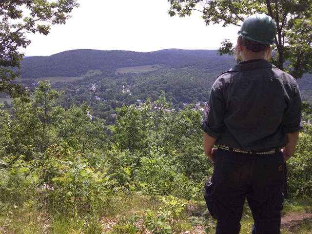 Another partner on this project is the Rivers and Trails Program, affiliated with the National Park here in Woodstockt, which provides assistance to organizations wanting to work together for common conservation goals. One of the Vermont/New Hampshire leaders of the Rivers and Trails Program, Jennifer Waite, was on the trail today helping the kids on the Faulkner Trail project.