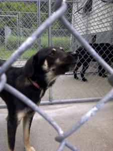 A technician at Woodstock Animal Care says the dog is very sweet but shy, a bit skittish, and seems to prefer being outside. She appears to be a little bit German Shepard, a little bit something else (Lab?) but is petite — not a puppy —  but not too old either. She has a very distinct high-pitched bark and was seen trying to play with another dog just an hour ago.