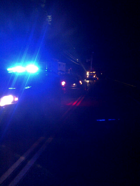 Woodstock Police and CVPS line crew are out on Rt. 106 this evening working to clear a branch from a power line. The downed limb, just past the Woodstock Inn Health and Fitness Center caused a complete power outage to South Woodstock and most of Rt. 106 to the Woodstock Village line. It followed a string of thunderstorms that passed through the area. Power was expected to be back by about 10:30pm according to authorities on the scene.