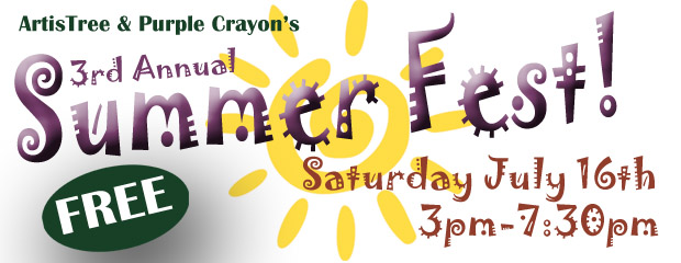 Support and participate in your local studio arts organization! This weekend… ArtisTree’s Summer Fest. What’s great about this place (located across from the Mt. Tom Farmer’s Market area off Route 12 heading north out of town) is that it is all about HANDS-ON! You get to do it. You get to CREATE!  If you have been wondering what IS ArtisTree? What is Purple Crayon? Visit and find out. It’s not just for kids!