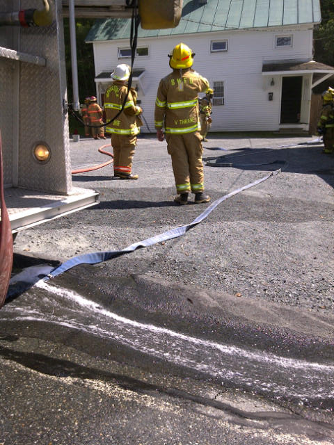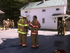 Woodstock firefighters have put out a house fire at 77 Hartland Hill Road this afternoon. Hartland Hill resident and neighbor Adam Jenks first detected the fire around 2:45pm and called 911. Firefighters dressed in heavy gear and breathing air tanks are still on-scene in the mid-to-high 80’s heat monitoring the situation as smoke drifts out of the building. However, the flames have been put down and the building still stands.