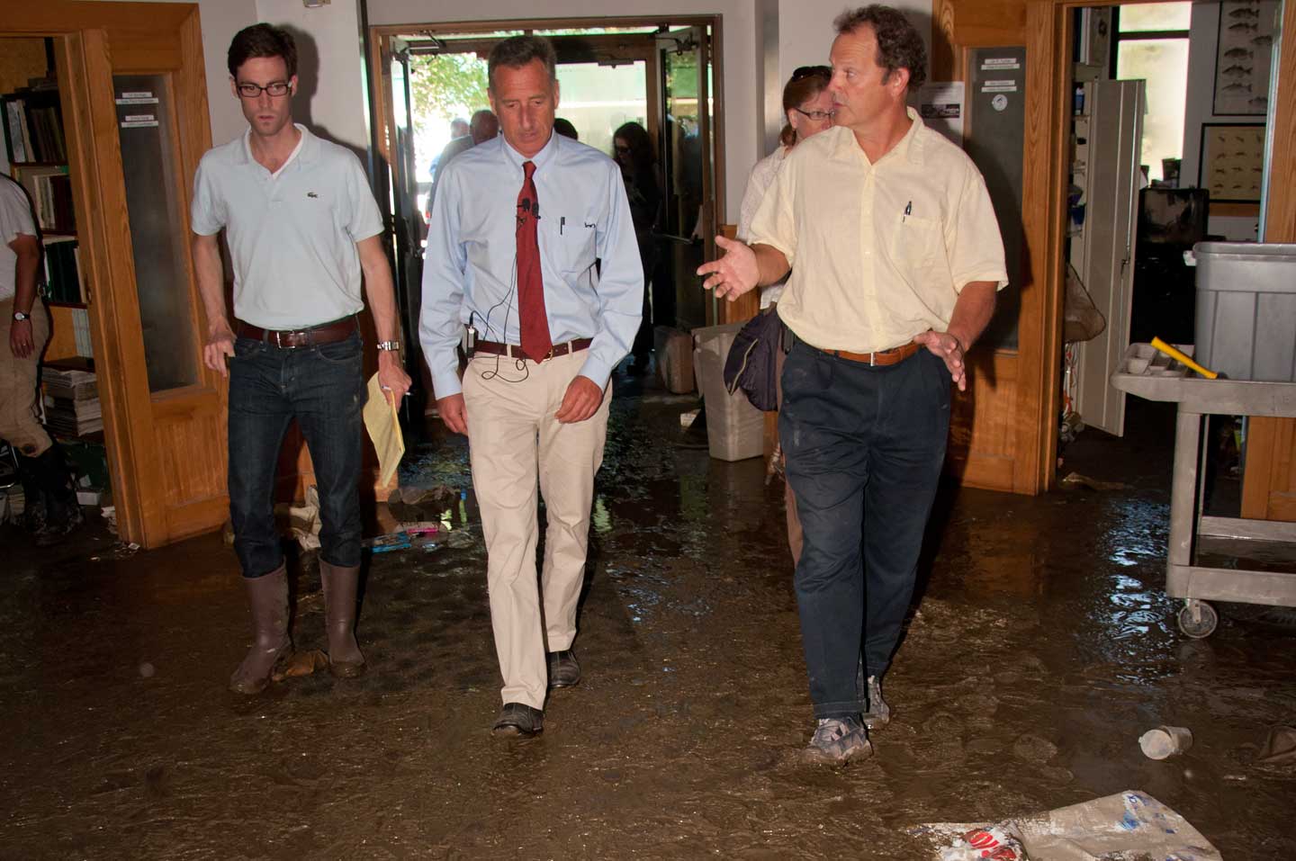 The first order of business remains ensuring public safety, according to Jeb Spaulding, the secretary of the Agency of Administration. More than 350 Vermont Guard members are helping to move supplies, clear roadways and helicopter ready-to-eat meals, medical supplies and water to communities cut off from the state highway system. Another 100 members from the Illinois Guard are coming to help out, as well. New Hampshire has loaned helicopters. FEMA is providing on-the-ground logistical support and has brought in 30 truckloads of emergency goods to the state (20 more are coming). The Vermont State Police has 120 law enforcement officials helping to stabilize communities traumatized by Irene flooding. In addition, game wardens, Department of Motor Vehicle officers and liquor control officers are assisting the police by carrying commodities to homes and checking on Vermonters who may need help. Fire safety inspectors are evaluating structural damage to flood-wracked buildings. The U.S. Border Patrol and the county sheriffs and municipal police departments have also offered to assist in the recovery.