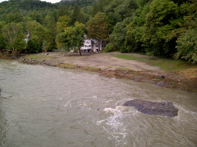 This is the Ottauquechee River today as seen from the Elm Street or Iron Bridge looking Northwest toward Mt. Tom.
