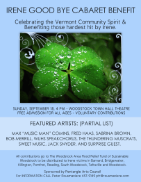 The Cabaret Benefit, emcee’d by Max Comins, will be held Sunday, September 18th at 4pm at the Woodstock Town Hall.