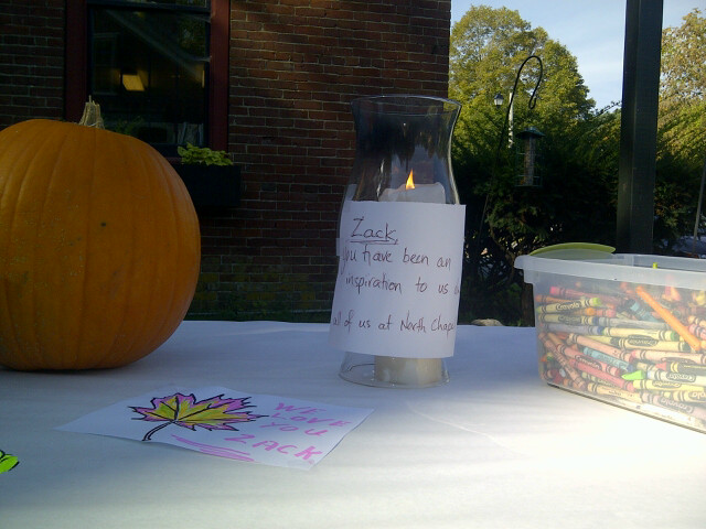 Zack’s Place on Central Street has a picnic table set up outside with a paper tablecloth, crayons and candles for anyone who would like to leave their lasting remembrances.