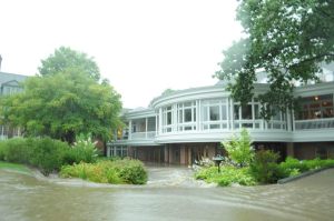 For those who don’t know, the Woodstock Golf Club is still closed (although they are serving lunch out of the Club House) as are the tennis courts at the Woodstock Inn Health and Fitness Center. However, the indoor swimming pool, lockers and showers, work0ut room are open. The outdoor tennis courts were scooped out and destroyed by flood waters and much more work will have to be done to restore them.