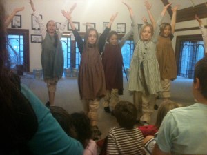 Several local kids  were  treated to a free preview performance of the classic play “Annie” at the Norman Williams Public Library yesterday.  Although the performance was brief, three scenes in all, the kids obviously enjoyed the library time.