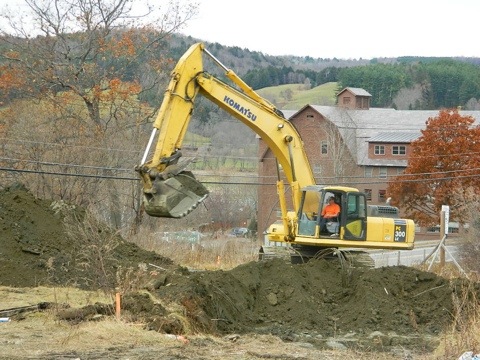 A total of 850 tons of contaminated soil is being removed from the site, according to Project Manager Dana Arey of Pathways Consulting in Lebanon, NH. The removal will be completed by Friday, and the workers will take another day or so to backfill the large holes with clean soil. The dirty soil will be taken to a landfill in Moretown, Arey said. Pathways Consulting is working for W.B. Development, whom Arey said is now addressing the environmental issues at the site.