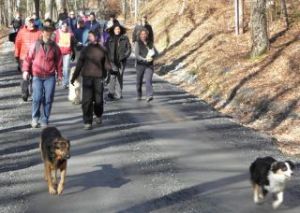 A hiking we will go…Two dozen turned out Sunday for a South Woodstock Ramble….Woodstock Early Bird notes the Border Collie/Australian Shepherd mix is clearly focused and leading the pack!