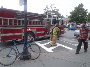 A Woodstock Early Bird reports the fire alarm going off as she walked into the Tuckerbox Restaurant for a mocha and sent us this photo.