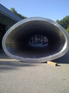 It’s a squished down 12 foot diameter pipe to replace a gully-washed-out 7-foot diameter pipe that held up the road and kept the stream flowing underneath. According to Webster, the Federal Emergency Management Agency was pretty much on-board with an equal to the old one replacement 7- foot structure. In fact, that’s all they’ll be paying for. How about that?