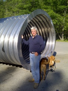 It’s meant to be the bridge and stream conduit for an area washed-out up by Alice’s Turn-Around off Smith Road. This big ‘ole thing at something like 40K is gonna’ go to fix a Class Four Road. It’s scheduled to go in next week if Vermont’s Agency of Natural Resources says it’s a go. Wouldn’t it be nice to have the Governor there for the installation? (But that’s another story…)