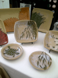 Woodstock Early Bird has been meaning to mention the great pottery creations from Frog Song Designs that have been offered all summer at the Market on the Green and will be offered — rain or shine — from Andrea Trzaskos today.