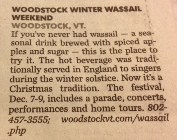 A Woodstock Early Bird tipster who watches these things has alerted us to our little hamlet, once again, garnering some national press. This time from USA Today in a Travel Section piece on places to get your Christmas Spirit Spinning: