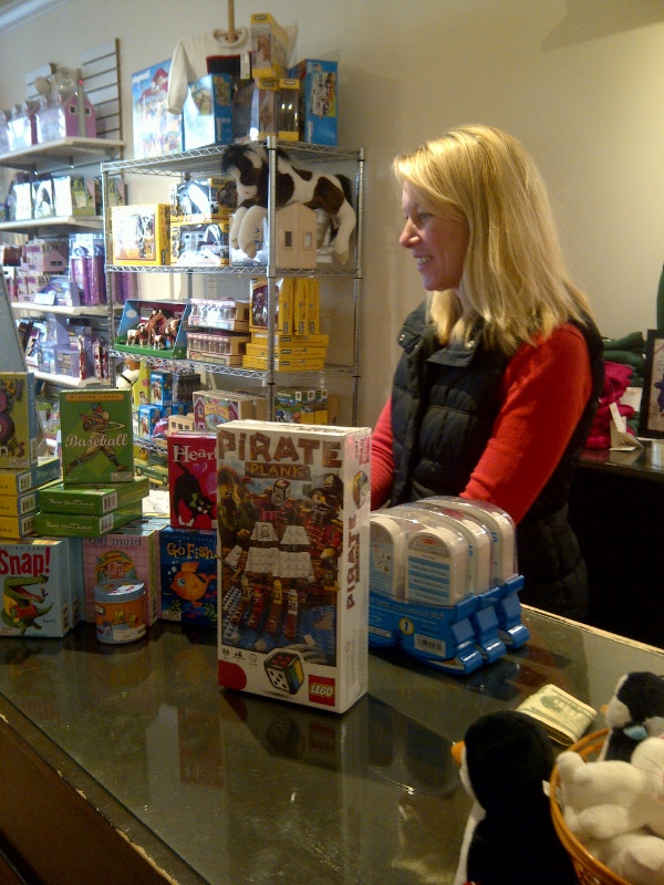 Here’s Kim at Red Wagon Toy Company register selling some LEGO: