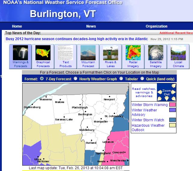 However, Southern Vermont and Southern New Hampshire DO have winter weather watches up from the National Weather Service with the possibility of a foot of snow in some locations. Heavy snow is expected beginning around 6am tomorrow with the watch up through Wednesday into Thursday morning.