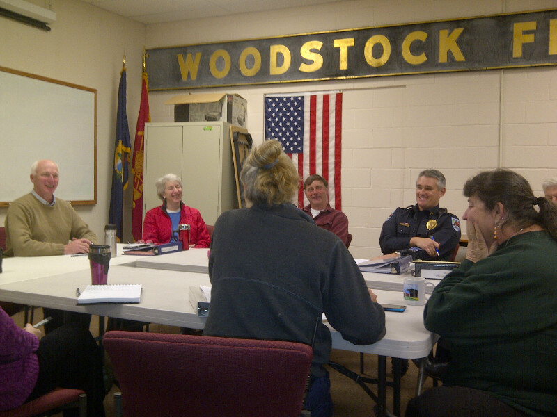 Woodstock’s Municipal Manager Phil Swanson, Rep. Alison Clarkson, Chip Kendall, Police Chief Robbie Blish, and Dispatcher Penny Davis at a Woodstock Emergency Services Meeting, 2011
