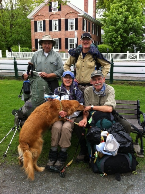 Some hikers we ran into on the Village Green have been savvy enough to get off the Appalachian Trail for a spell until the weather settles down again. They said they had heard that there would be severe storms so are taking shelter here. One of these hikers (upper left) is from Texas, the other three from Peacham, Vermont. They met on the trail and decided to come into town all together. It wasnt clear if their priority was ice cream or pizza but we think they were headed to Nick’s Pizza Chef….One of these gentlemen just retired from Peacham’s newish whiz bang Northeast Astronomy Foundation and its Northern Skies Observatory. http://www.nkaf.org. He invited us all to come up and visit.