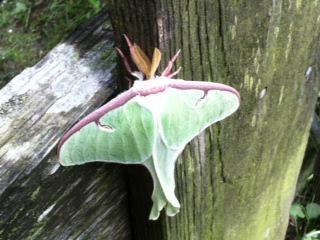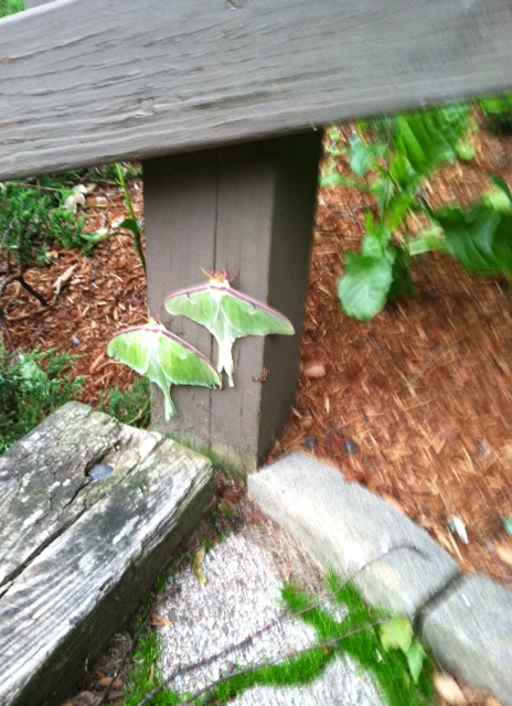 This, Woodstock Early Birds, is a LUNA MOTH, a giant silkworm, a lepidoptera, a lovely “freak” of nature. It snacks, as a caterpillar only, on sumac bushes round these parts and then turns into this lovely HUGE moth, living only a week or so, without feeding, females exuding pheromones with the sole primordial intent of attracting males. Mating and done. If you see one, it will stay still while you observe it, as it only flies around at night. Do not be alarmed by this creature, although some of us find them viscerally scary. Pop culture internalization of movies featuring Hannibal Lector surely fueling some of this concern. Enjoy the LUNA?