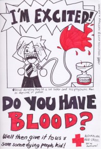 Apparently “presenting donors” will receive a t-shirt. All your fave blood volunteers and EMS emergency personnel will be there to hold your hand and assist if you’re about to go down.Give ’em a high five before they start your draw.